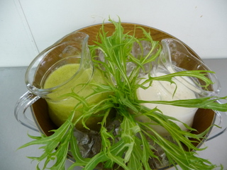 昨日のお野菜たちを使ってこんな風に変身しました。 天空お漬物 水菜のジュース 天空サラダ