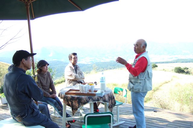 美味しい絞りたて牛乳を頂きながら、眺望のすばらしいオープンデッキで様々な興味深い話をしていただきました。