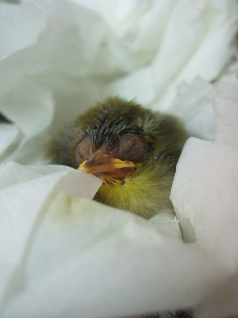 丸まった舌は、口の中に納まらず、クチバシの横からはみ出てしまっていました。。。
