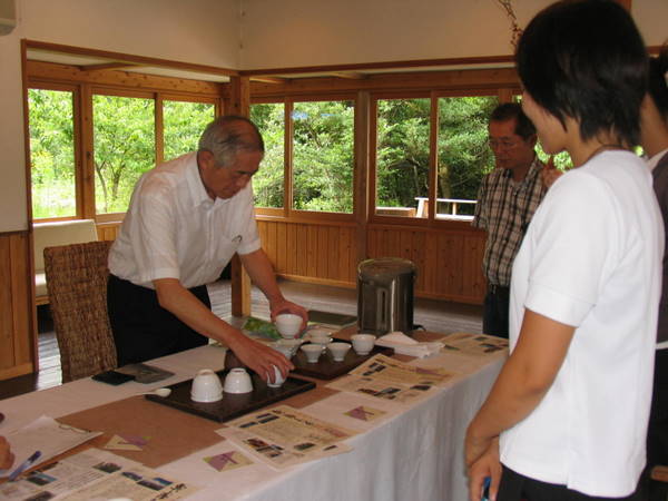 より美味しいお茶の入れ方を学ぶべく、講習会が行われました。 お茶の美老園、社長様が天空の森まで 足を運んでくださいました。 まずは、手ほどきを・・・ 普段、天空の森で使っている急須で 美味しいお茶を入れるには というわけで・・・ 計量カップ・スプーン、はかり、温度計まで 登場して大研究です どうでしょう?? 飲んでみたくなりました? 香りをお届けできないのが残念です。 お茶講習会の横で、 我がBOSSは、南日本新聞のインタビュー中。 見てください! この真剣な顔。 思わず、隠し撮りをしてしまいました
