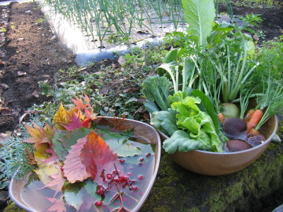 今日も某スタッフが畑へと走り、腕まきしてせっせと荒いものをしています。
