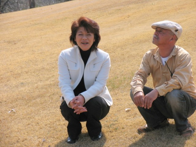 わが社長は、天空の森から旅立つヘリコプターを見て、感無量の放心状態。↓