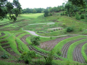 梅雨に入り昨日はすごい雨、段々畑も水だらけ野菜を取るのも大変です。