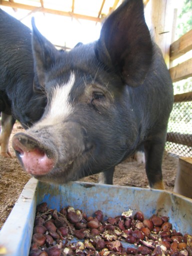 でも、スペインのイベリコ豚は、どんぐりを食べているからあんなに甘くて柔らかいおいしい肉になるんだそうです。